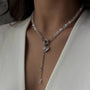 Durch das verlängerte, filigrane Kettenelement entsteht ein eleganter Y-Effekt, der das Dekolleté schön betont. Ideal für Abendlooks, besondere Anlässe oder romantische Outfits, aber auch als funkelnder Akzent im Alltag tragbar.